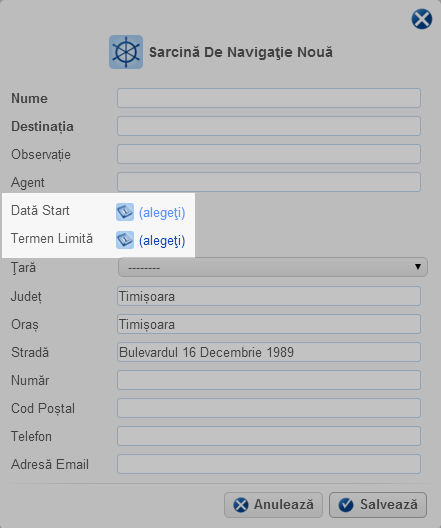 Pentru cazul in care se cunoaste momentul in care va incepe si se va incheia sarcina, se poate crea aceasta sarcina si se poate delimita cu ajutorul campurilor “Data Start” si “Termen Limita”.
